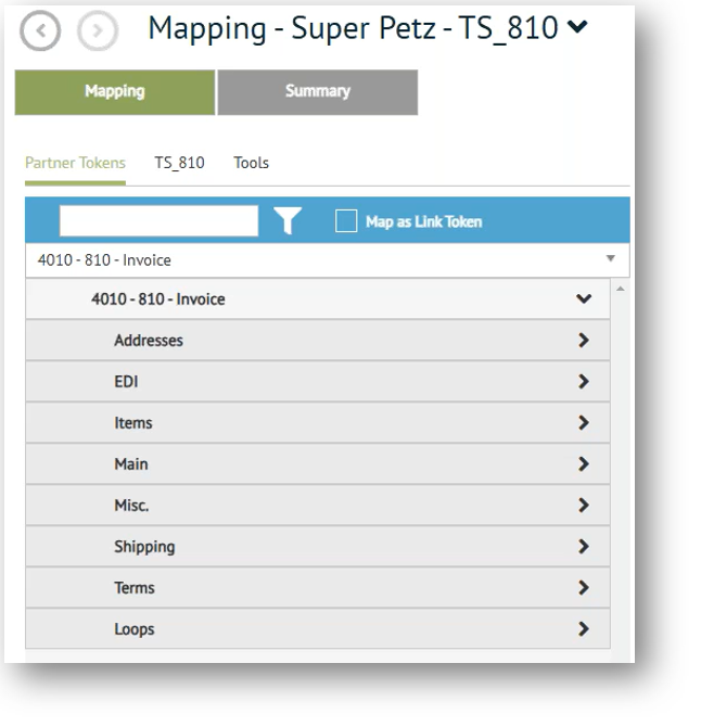 Note that the Map as Link Token checkbox under the Partner Tokens tab can be used to link a selected token back to the originating inbound document and pull the value from it. See Map as Link Token. For documentation on adding or editing import maps, see Working with Import Mappings.