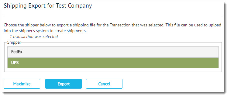 In order to set up FedEx or UPS to import data generated from Transaction Manager, a file must be created from Transaction Manager. Once the file is created, the shipper must be configured to import that file. Before proceeding with the setup, ensure the settings have been configured in Transaction Manager so you can start the shipping export process.