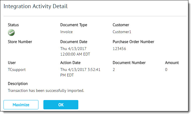 The integration activity log provides a detailed overview of all activities and operations that are associated with your Enterprise Resource Planning (ERP) integration. Use this log to monitor the integration for Trading Partner EDI compliance, export/import errors and so on.