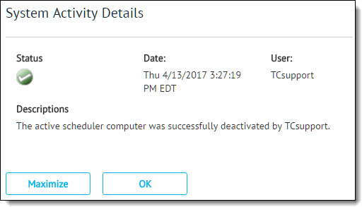 Optionally, this log can also be accessed from one of the other system activity pages via the System Activity dropdown control on the action bar.