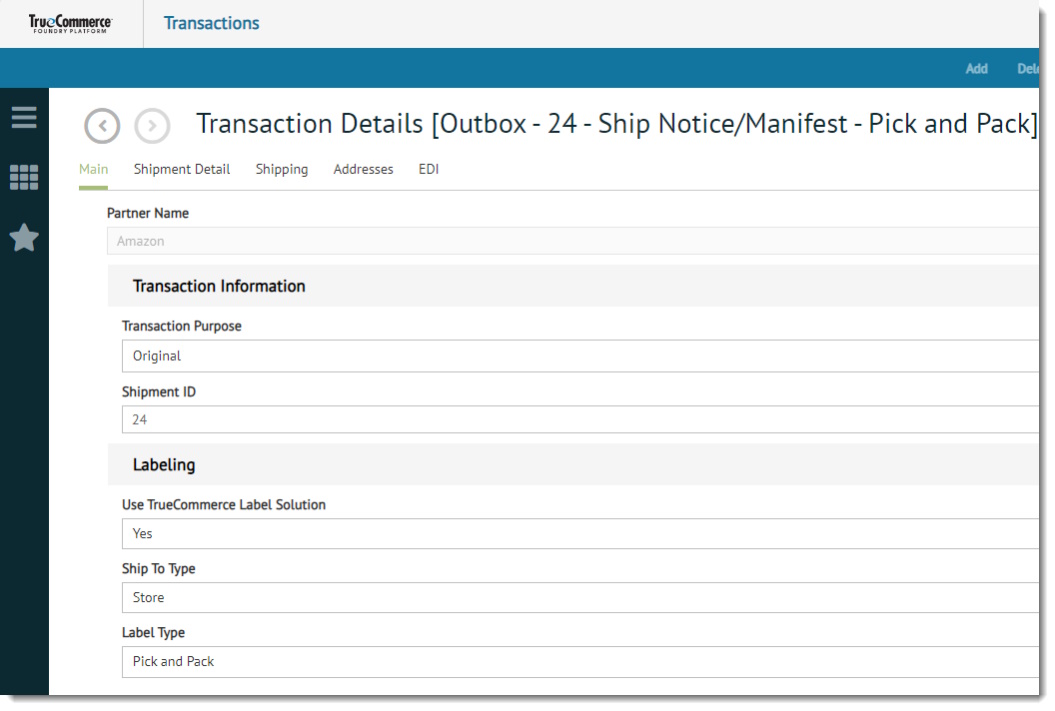 The TrueCommerce Labeling solution can be used to generate labels and print them via the Transactions workspace Print Menu. If your Transaction Manager implementation does not include this functionality, contact your TrueCommerce representative for more information.