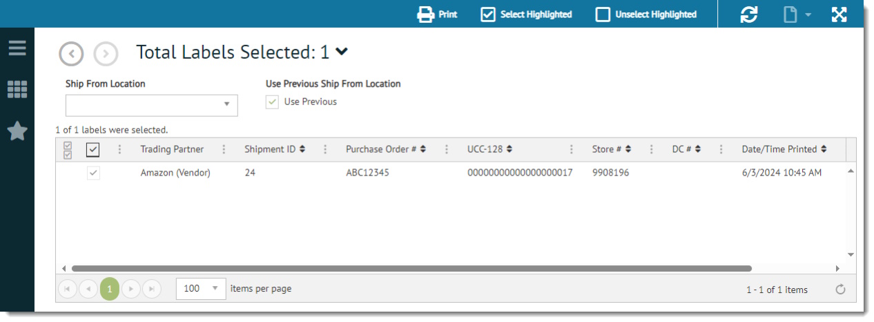 If needed, choose a Ship From Location. Otherwise, ensure that the Use Previous Ship From Location checkbox has been selected.