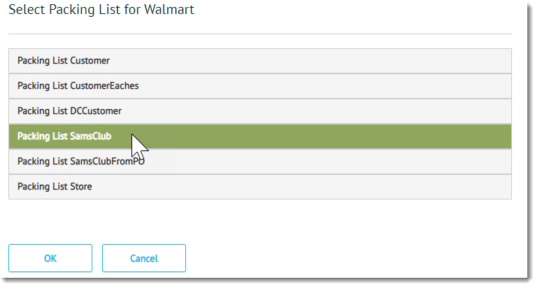5. When prompted, make a selection from the packing list dialog box and then click OK.