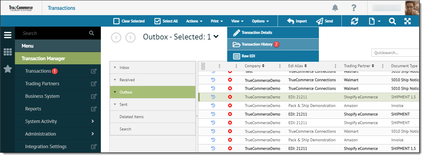 Select Transaction Manager > Transactions on the Foundry Menu to launch the Transactions workspace.
