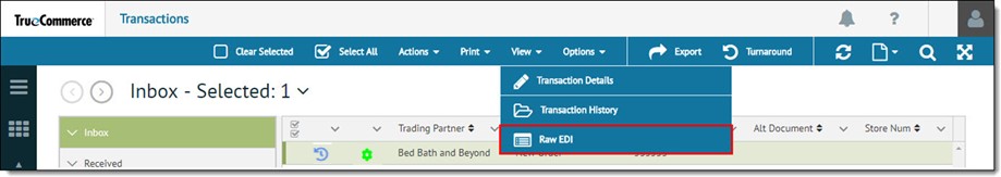As an alternative, you can select Raw EDI from View options via the Transaction Details page.