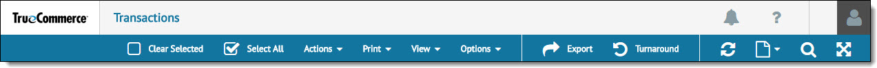 Note that you will need to locate and select transaction(s) from this grid in order for an action to be performed. Specific controls for those actions are found in the action bar, described next. See also