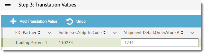 Under Step 3: Translation Values, select the partner account and then enter the appropriate values for the chosen translation parameters. More than one parameter and value can be used per partner account.