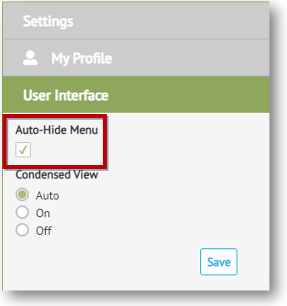 Select or clear the Auto-Hide Menu checkbox to automatically hide or display the menu after you open a page.