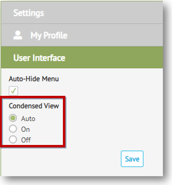 Select Auto if you want to set Condensed View on your PC, but not on your tablet and phone.