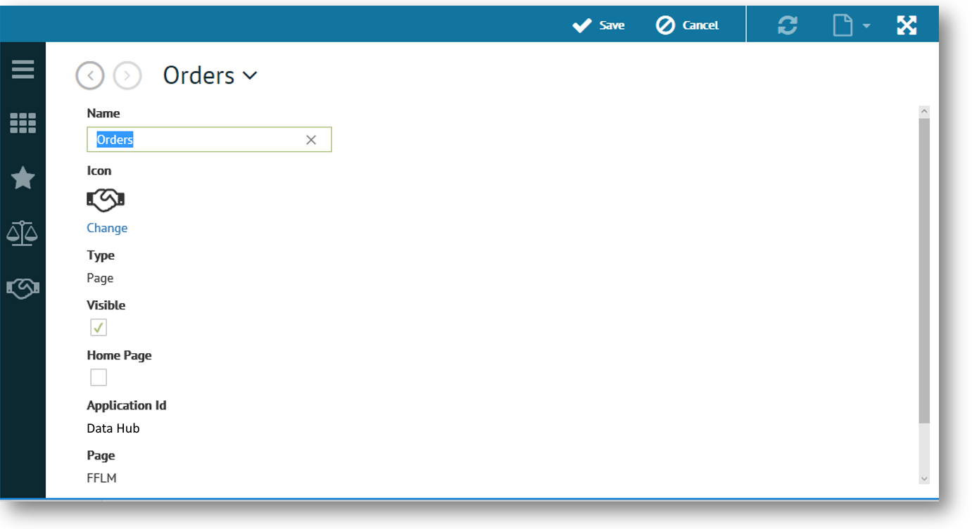 Select/deselect the Visible checkbox to display or hide the quick link as a navigation control.