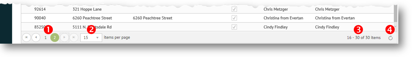 Use the following controls on the pagination bar at the bottom of the grid to select specific pages and to change the number of records displayed per page.