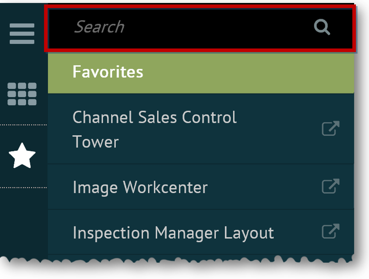 Select the menu link for the favorite you want to open. The Favorites menu collapses and the associated application page opens on the right side of the workspace.